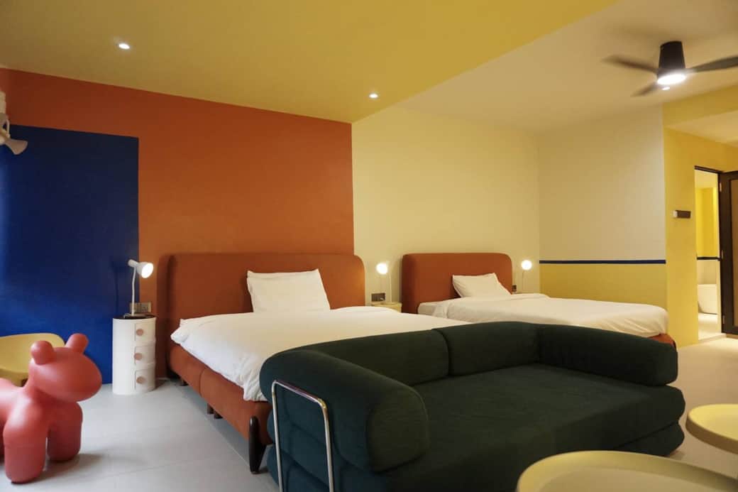 Central Malacca – 350m from Jonker Walk. Sunny orange décor sets the tone for family fun. -Bright & cheerful design -Super spacious 47sqm -Family-sized layout with 1 King and 1 Queen bed -Pantry & lounge for meals or gatherings The happiest family suite in Malacca!