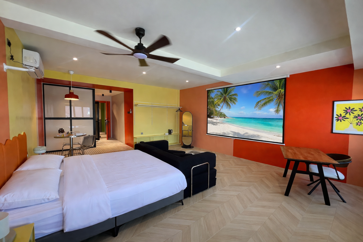 Travelling with friends? The Orange Suite gives you the space to stay together without squeezing into a small hotel room.